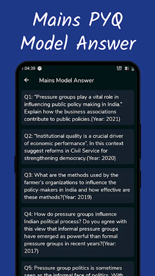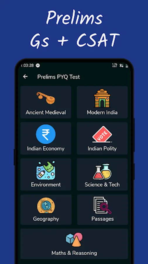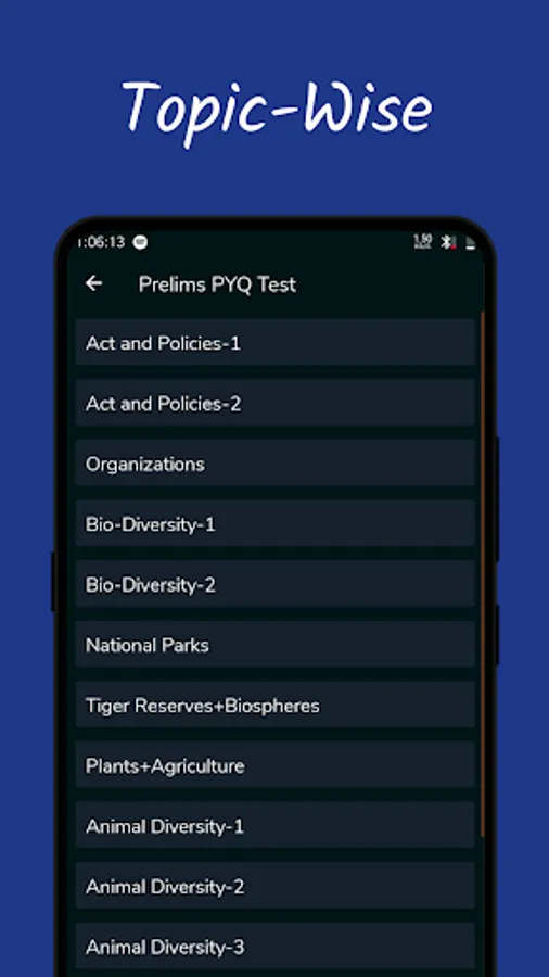 Our app also provide Prelims PYQ Quiz in Topic-Wise Tests with Solution: