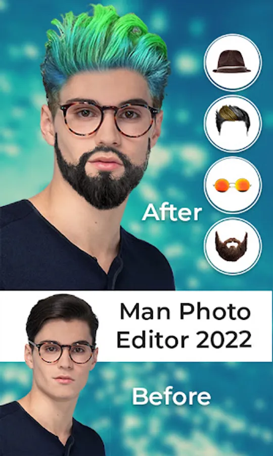 Hairstyles play a 💯very important role in 👱men’s and 💇women’s beauty. If you change your hairstyle then you will get a totally different look, you will look like a totally new person. The same is true for man beard styles as well. If you are looking for a men’s hairstyle photo editor application to change your hairstyle on your photo, then you are in a 👍 perfect place. Men hairstyles photo editor is the latest application to change boys’ hairstyles on your picture in an easy way. In this application you can pick from dozens of 👦 hairstyles stickers, 🧔beard style stickers, mustache stickers, abs stickers, 💪muscles stickers and 👓glasses stickers.