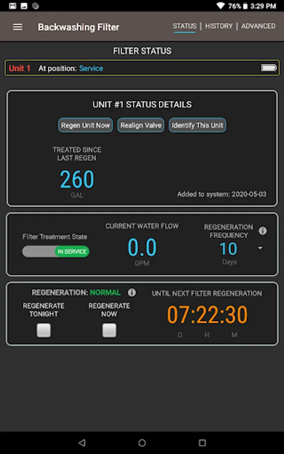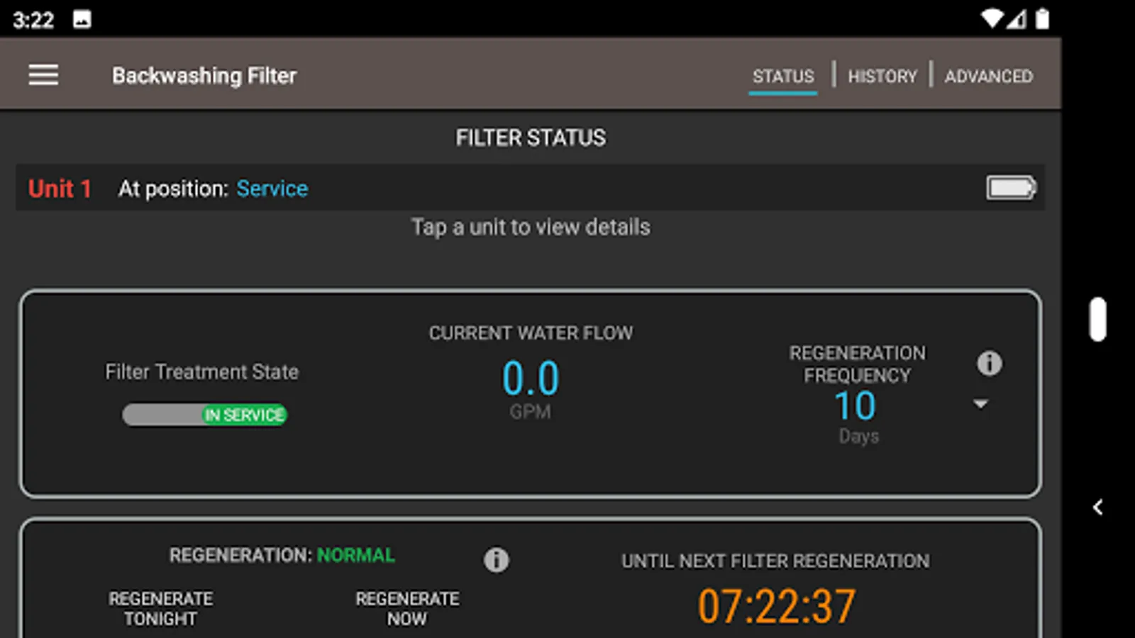 - Start and monitor a regeneration or backwash cycle from your phone or tablet.