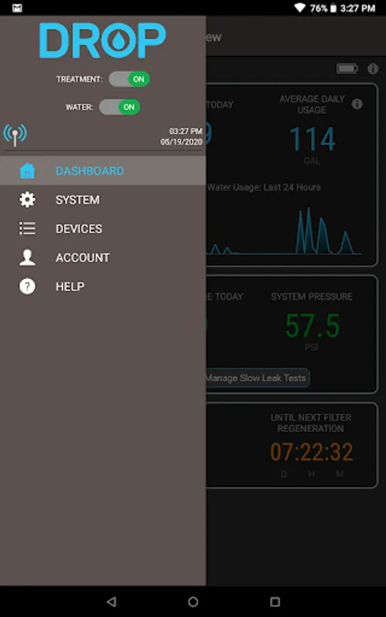 - Receive notifications for anomalous water usage or problems with your DROP system.