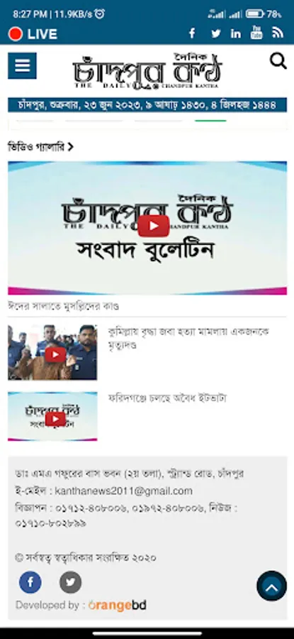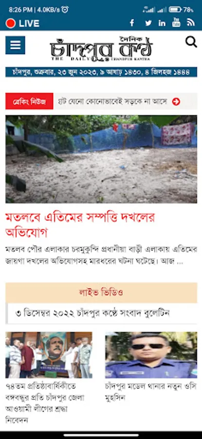 The Daily Chandpur Kantha is an Print Edition online base bangla News portal to provide news article