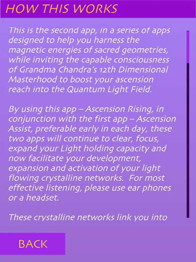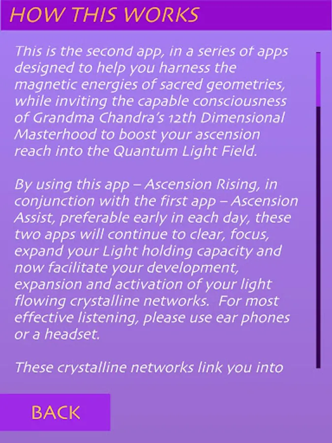 * Use of this app brings in more joy and playfulness into our work and lives as we become more sensitive to the energetic value of these higher energetic frequencies in the flow of creation. We can now know that our original birthright creative capabilities are being restored as we birth ourselves into this new energy.