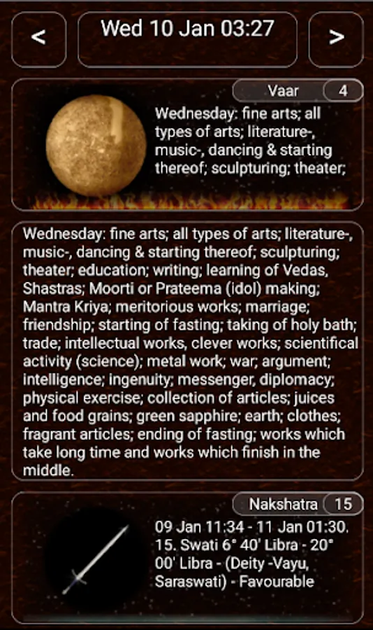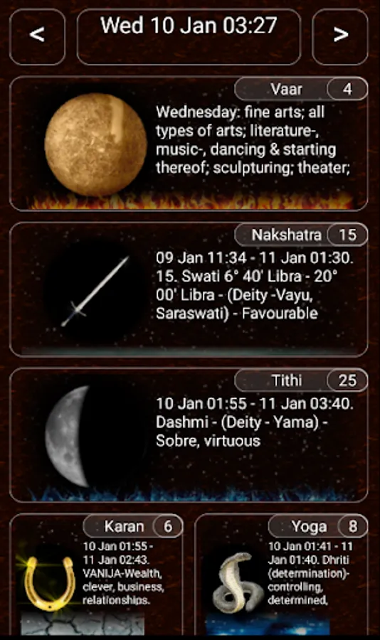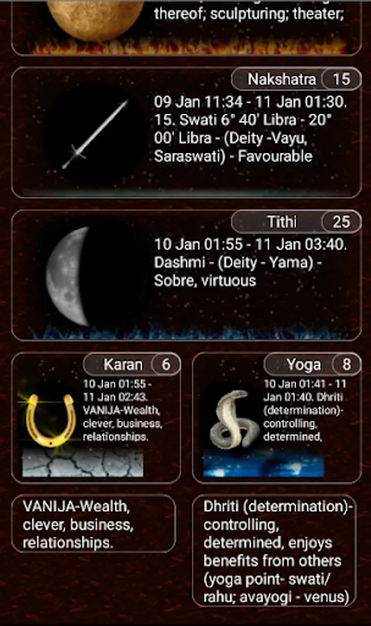 Panchanga or vedic lunar calendar. Application helps select best event time.