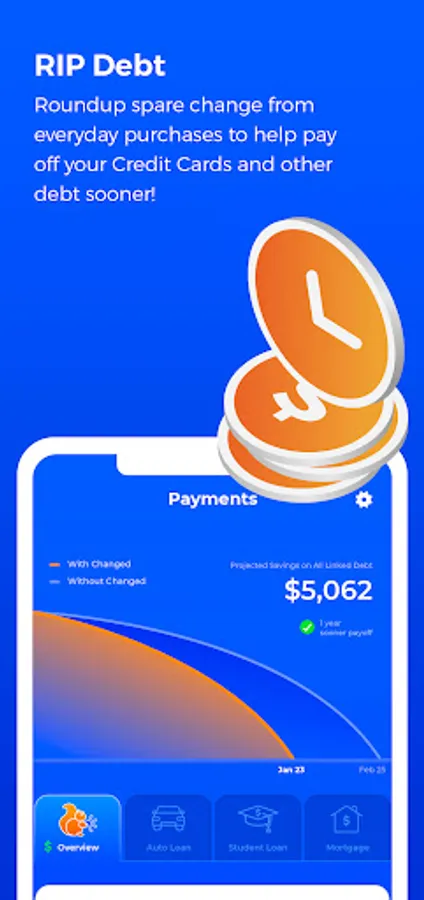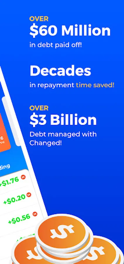 Changed reduces the need to budget for additional payments toward your loans because it aligns with your natural spending and automates the whole process. Just use your credit/debit cards as you usually would and watch your accumulated change become a powerful tool to help pay down those loans and be free from debt. Join the Payoff Debt Revolution and save thousands of dollars and gain years of your life back.
