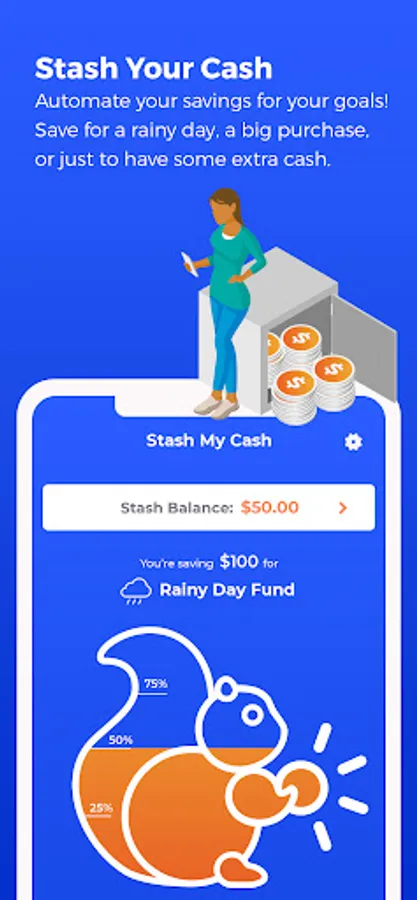 With Stash My Cash, you can automate your savings so you have some backup money in an emergency saving fund or you can set a goal to save for a big purchase. When you set up Stash My Cash, you can split your savings between paying off debt and saving. Or you can just send 100% of your savings to Stash My Cash. You're in control.