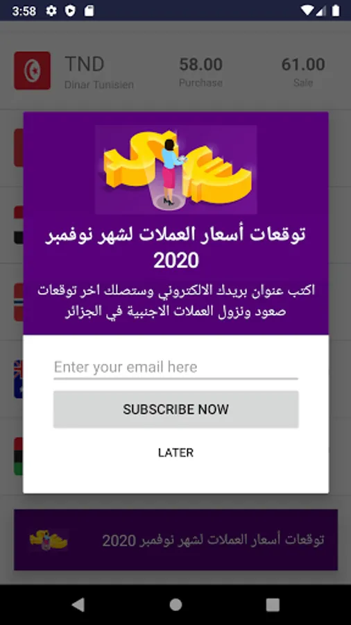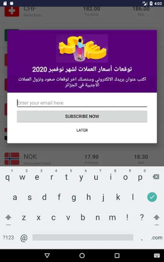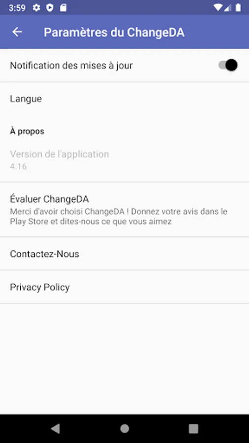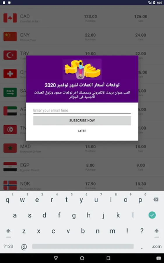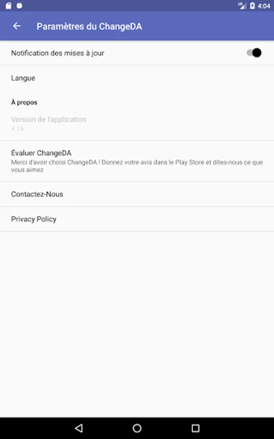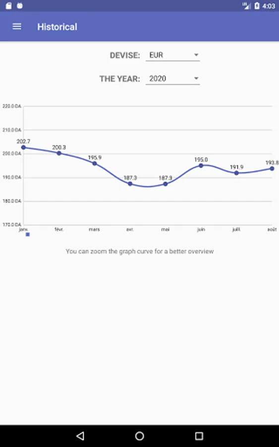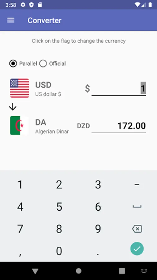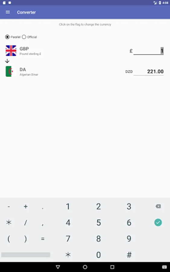 ChangeDA is a Mobile Application that collects currency exchange rate information US Dollar ($), Euro (€), Pound (£), and the Canadian dollar (C $) against the Algerian dinar at the parallel market in several points in Algiers.