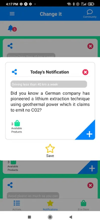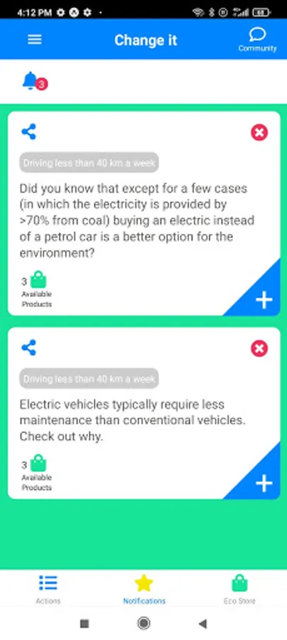 - Help others living a more sustainable life by creating notifications that will be shared with the community