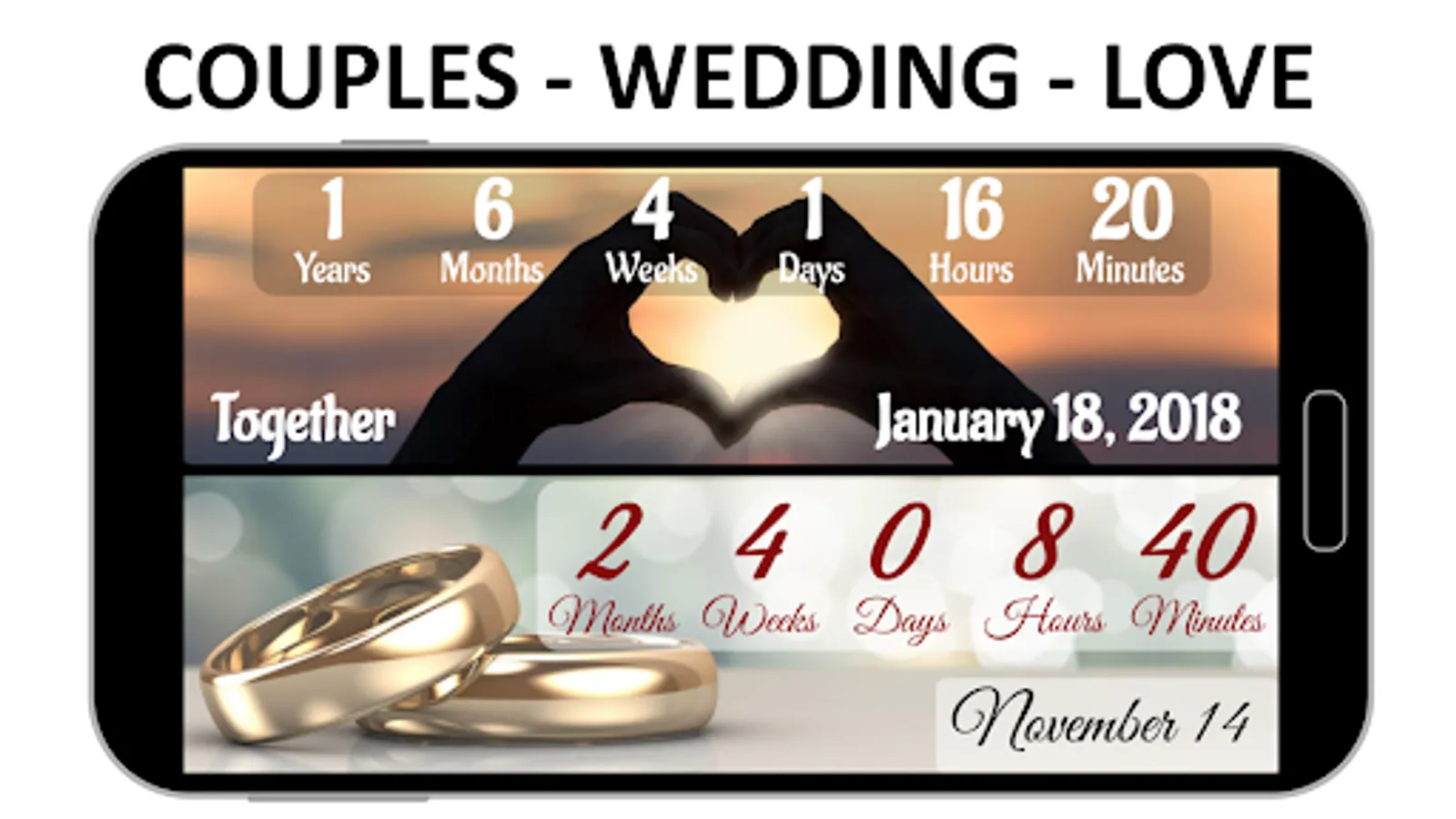 Use small widgets for day counters and long widgets for counting every month, week and even hours and minutes.