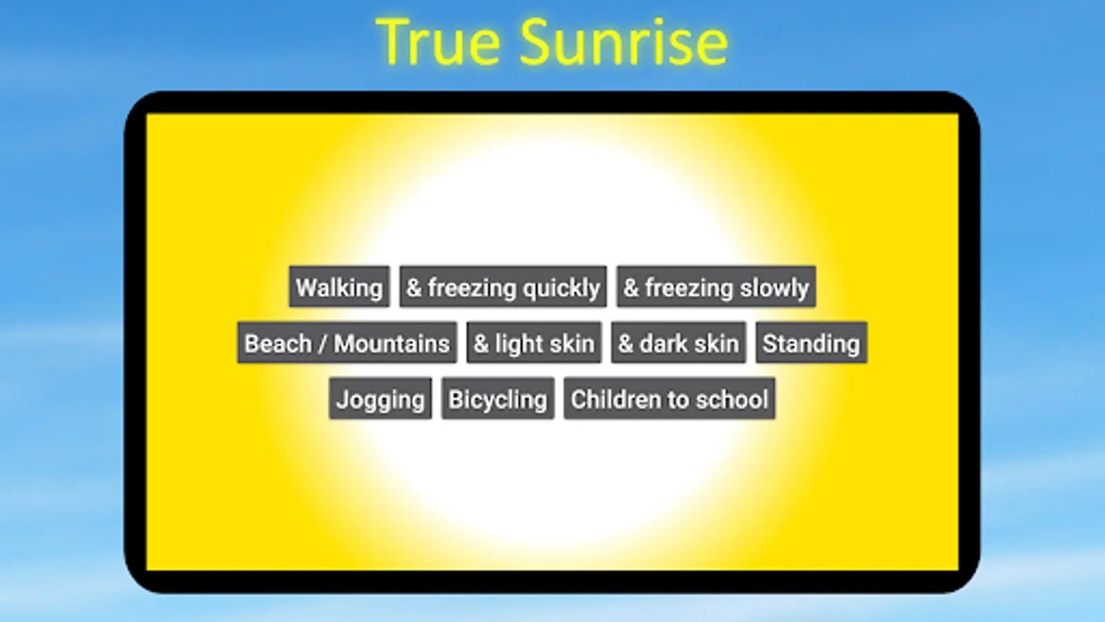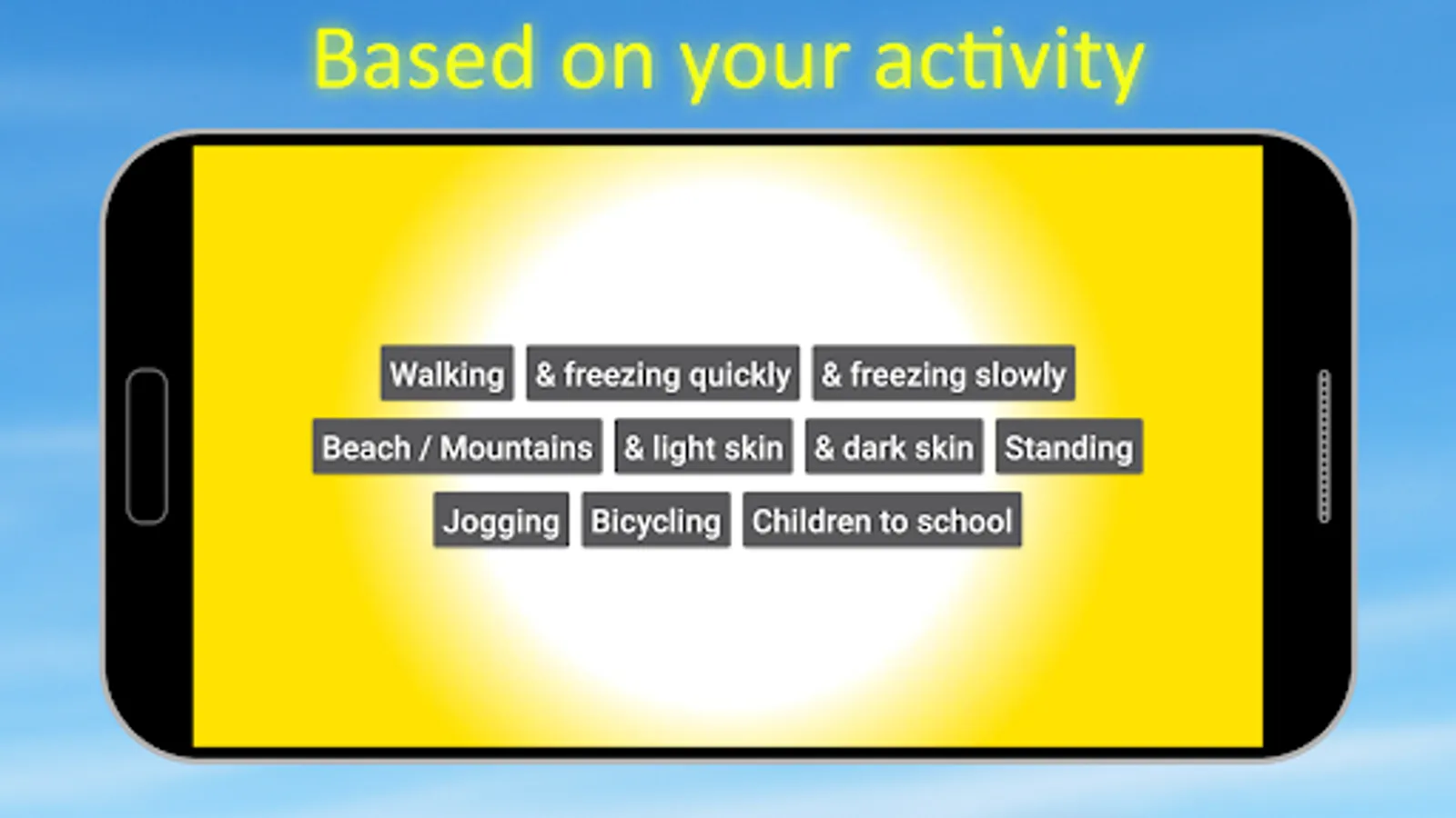 The optimal clothing selection depends highly on your outdoor activity. If you will be partaking in exercise, then you will not freeze as quickly in comparison to standing for 30 minutes. On a bicycle, gloves are needed more often due to the chilling wind. The app has profiles for people who tend to freeze quickly, who tend to freeze slowly or who tend to get a sunburn quickly and more frequently.