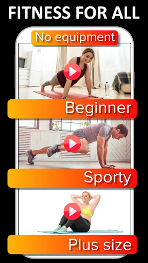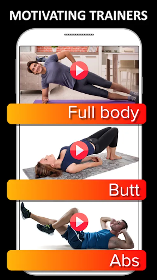 For a good overall fitness it is important that you train all muscles over time. That's why you'll see fitness points for the relevant muscles for each workout. This way you can choose the perfect workout for today to keep your fitness in balance. There are fitness points for arms, abs, butt, chest, back, legs and shoulders.
