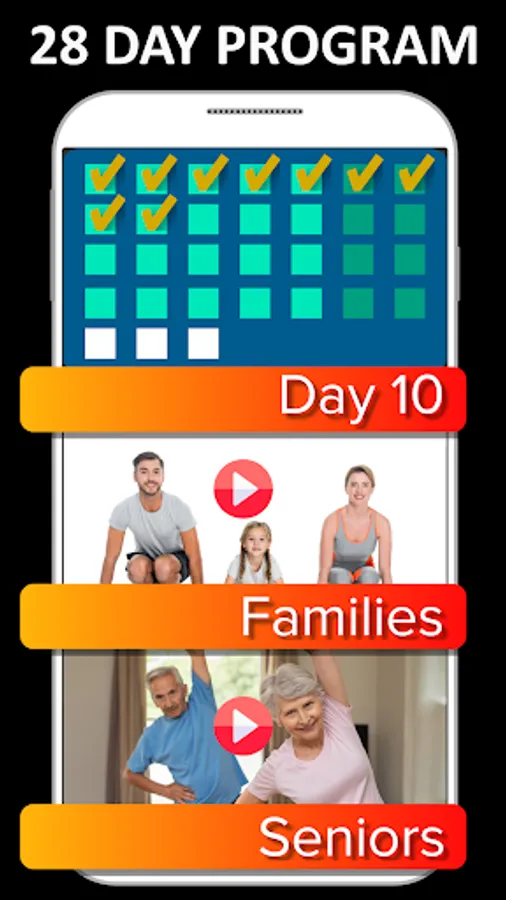 Start our 28-day program to match your current fitness level. Each day you'll be presented with a workout that focuses on different muscles. There are even days with stretching to help you recover and improve your flexibility. Hang in there until the end and you'll have already taken the first step to a fitter life.