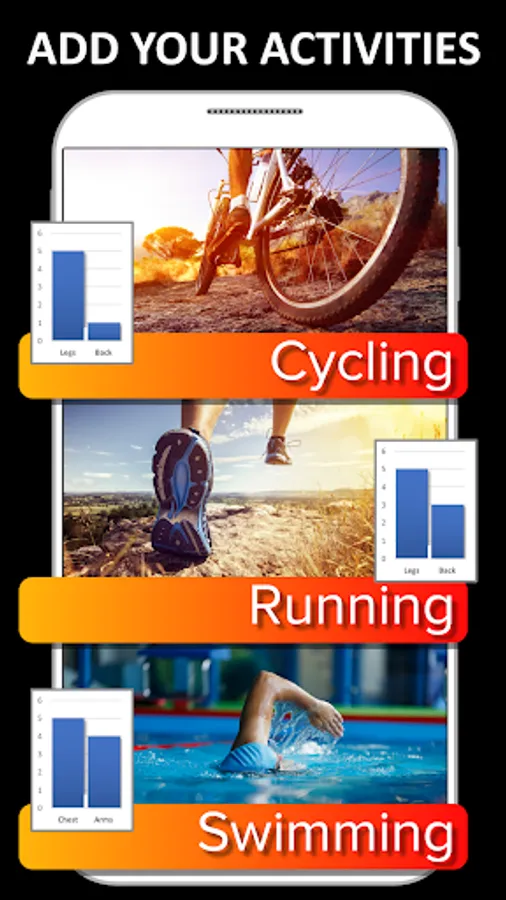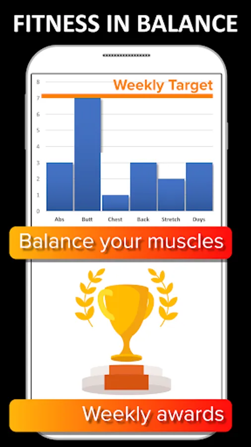 Staying fit means getting enough exercise every day. If you reach 7 points for each muscle at the end of the week, you will get a bronze award. If you keep going for 2 weeks, you'll get silver, and for 4 weeks, gold. But be careful, if you miss your goal by one week, all medals are lost. This will motivate you to keep fit every day. Also tell your friends about your successes by sharing your weekly stats and awards.