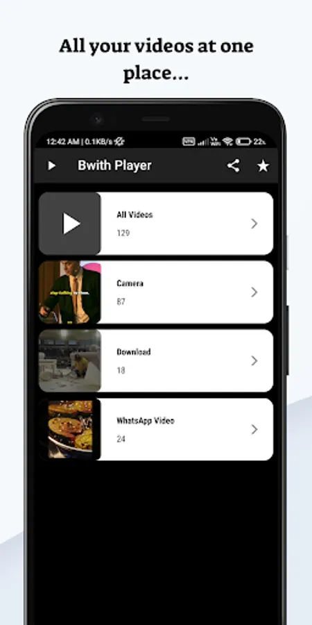 Bwith Player is a completely free HD video player, simple and powerful. Any video format is supported. It is an all-around player. That has All Video at one Place. Quick & Smooth video player