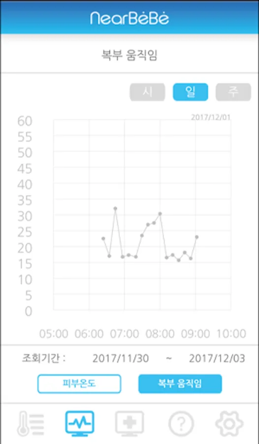 5. Infant / per period by providing trend data graph (between skin temperature and abdominal movements, the last 3 months)