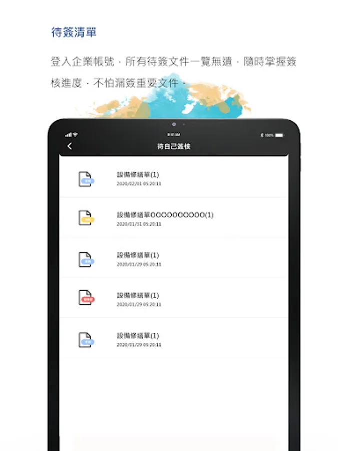 ● To-be-signed list, check which documents have not been signed