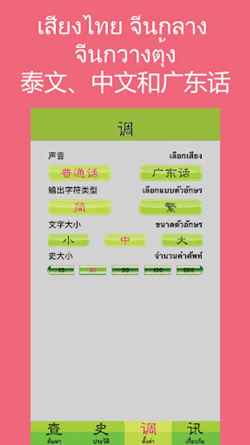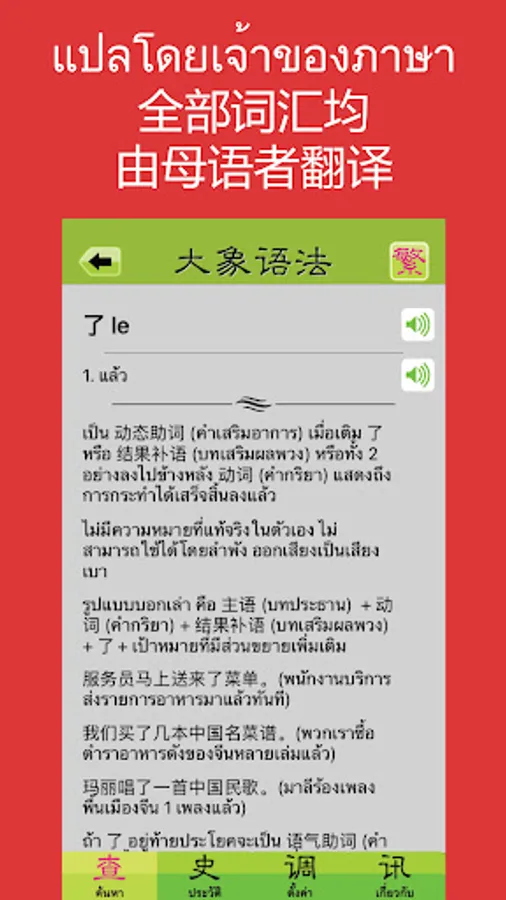 3. You can choose to listen to the vocabulary of Thai, Chinese and Cantonese from the audio recorded by a native speaker.