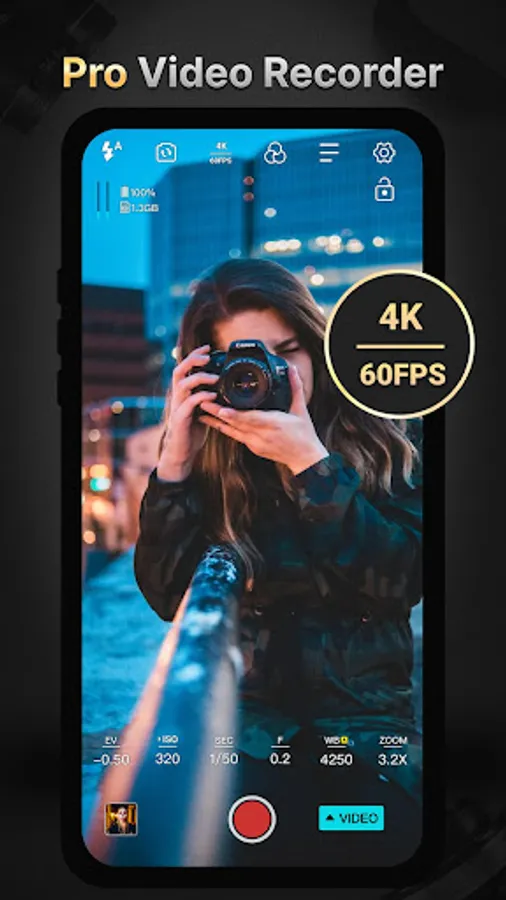 HD video camera supports RAW photos, 4K vlogs, and cinematic videos. It is a professional movie pro recorder which supports DSLR digital camera control like a real camera such as HDR, time-lapse, slow shutter, and night moment pro camera.