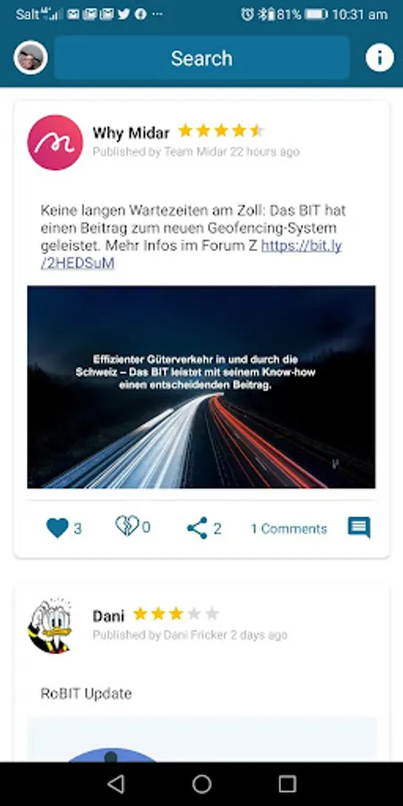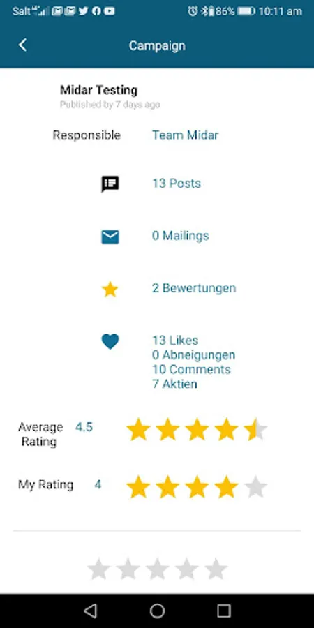 Midar App users can directly receive posts on the message area on the lock screen, ensuring top attention. With a click, they can provide feedback (likes, dislikes, comments, and ratings) or can even reply by sending pictures, selfies, documents (e.g. PDFs) or stream videos. All members within the same campaign, fostering social exchange, can then see all feedbacks. Midar App users can also be sure that their data is only be shared with the campaign they participate as there is no third party intermediary who may use data for his own purposes.