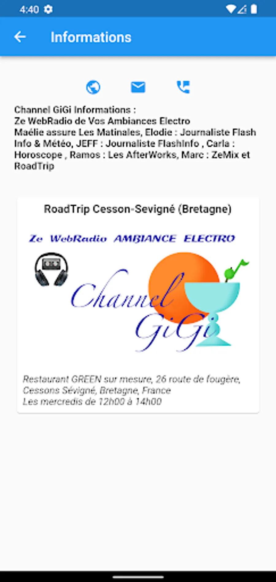 Ze WebRadio Channel GiGi est la web radio Ambiance Electro en Bretagne et cote atlantique. Channel GiGi est une référence des diffusions dans les pubs, lounges, restaurants et commercants, mais également chez soi. Ambiance Electro calme, sans publicité, à écouter en 24/7 sans modération ! Découvrez notre monde musical d'ambiance?
