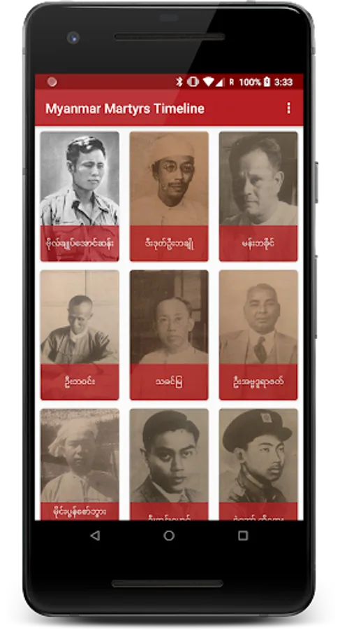An information apps sharing short biographies of 9 Myanmar Martyrs and the tasks they have done for the country and the people before assassinated on 19 July 1947.