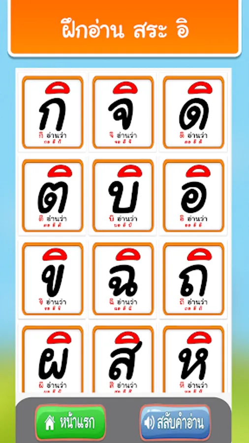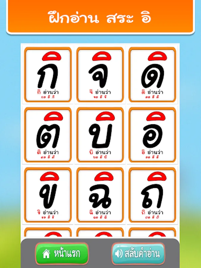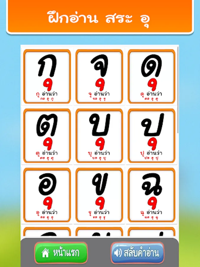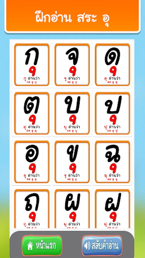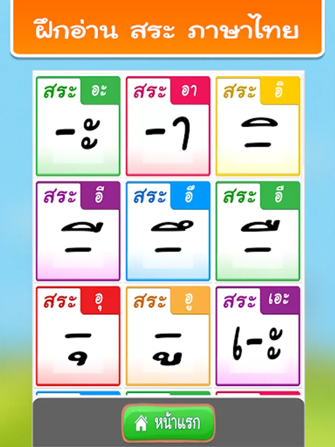 2. Practice reading Thai vowels from pictures with 32 sounds.