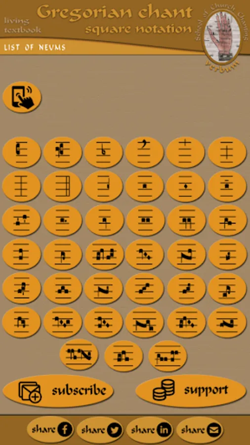 Online tutorial for mobile phone, tablet. Lessons about Gregorian chanting. Introductory Topic: "Notation".