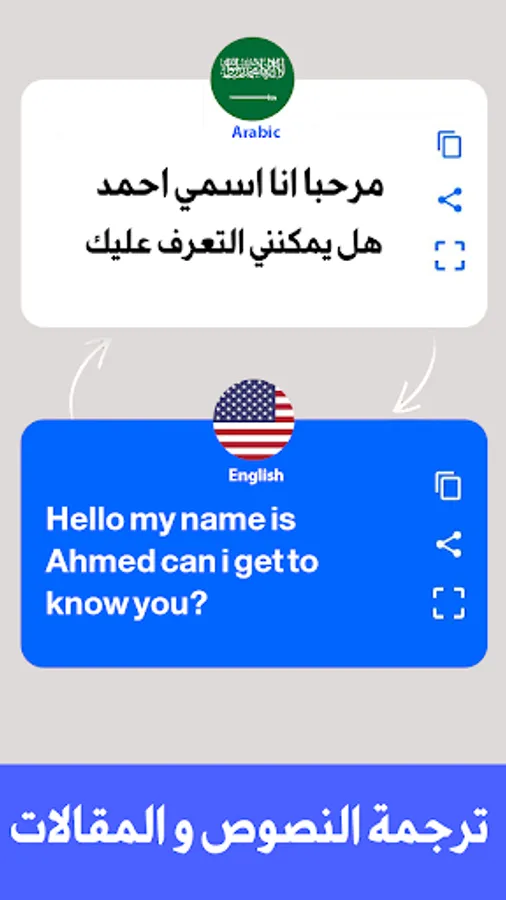 Or translation from French to Arabic, or translation from Spanish to Arabic, and a large group of languages that you can choose from