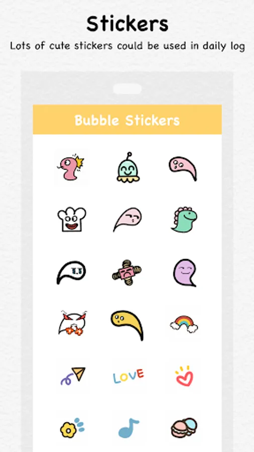 2. Sticker: You can select a sticker to your diary, move and transform the sticker to everywhere in the diary