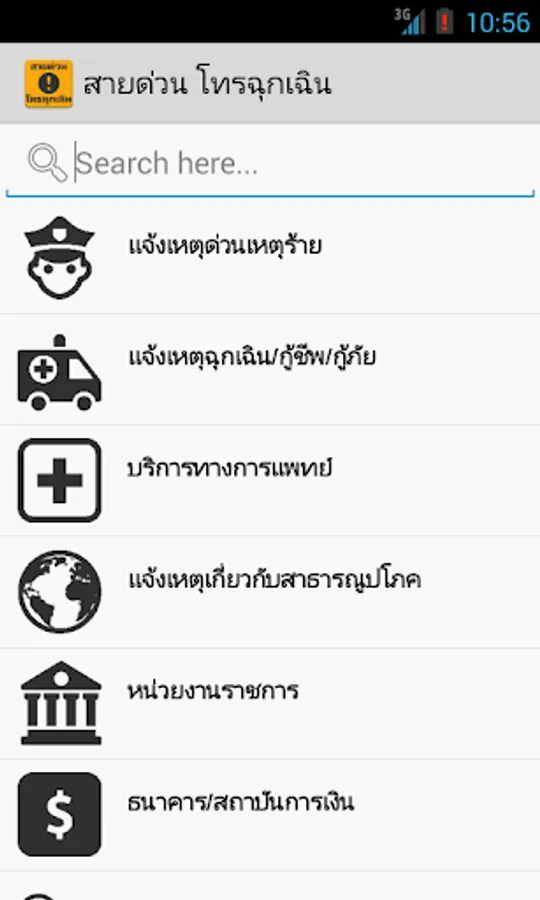 The application is designed in the Metro Design style that gathers all emergency numbers in one place. Whether in the police, nurses, paramedics or banks.
