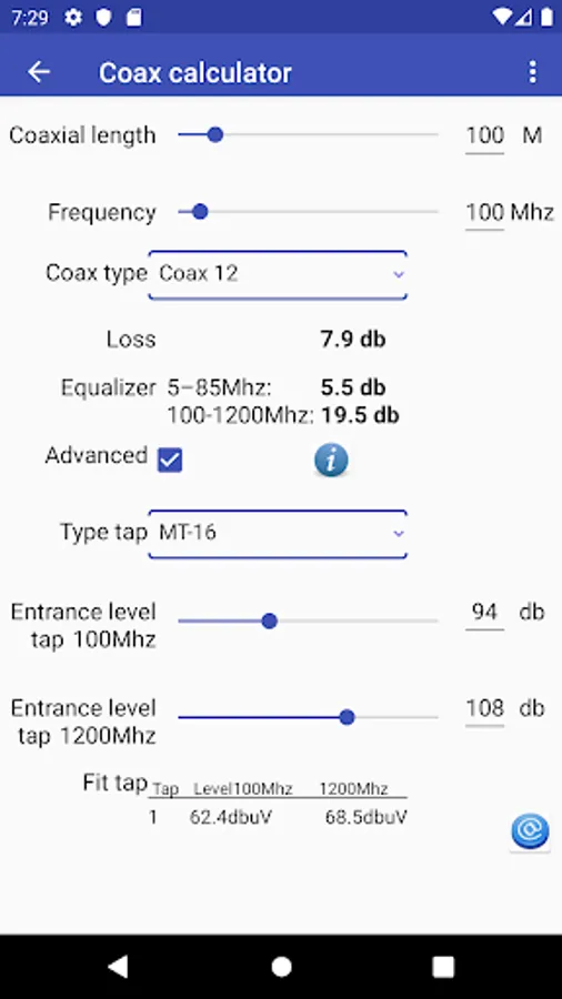 An easy tool for the technician for calculating with coaxial cable.