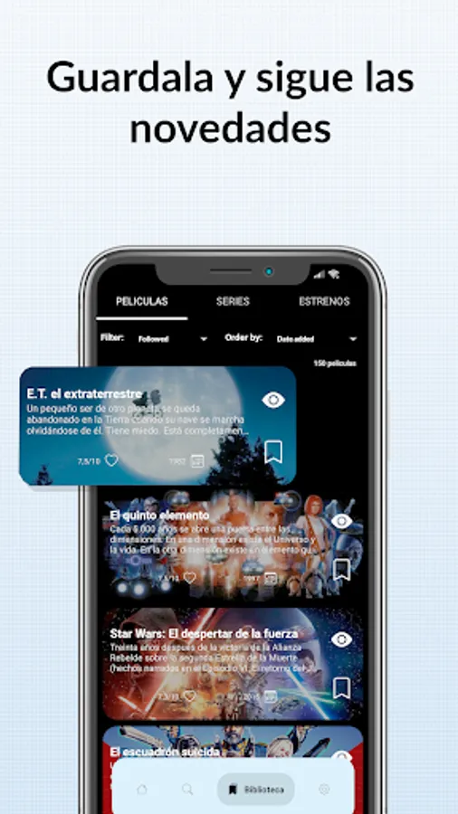 WhatsNew allows you to search and filter series and movies by your likes, as well as save the ones you might like to improve the recommendation algorithm.