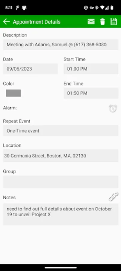This app has an independent calendar stored separate from the built-in calendar on Android devices, allowing you extra privacy if you need it.