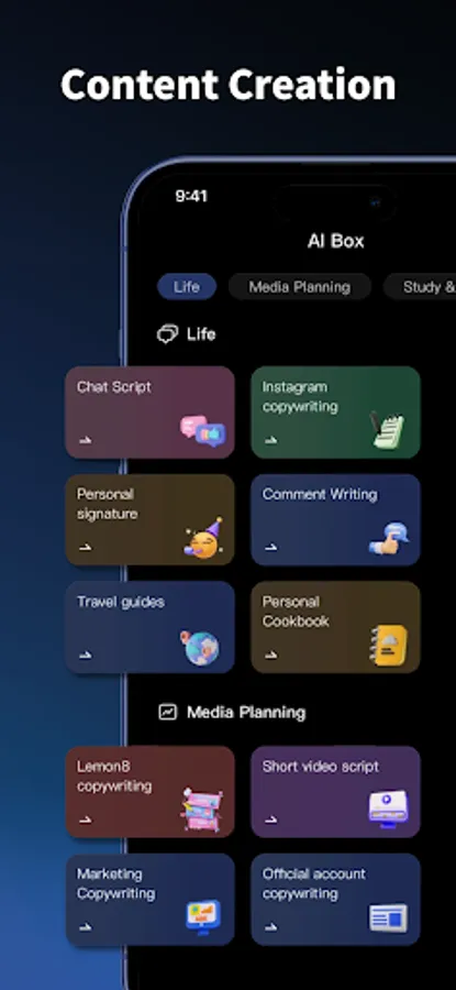 - Rich and diverse creation scenarios include chat scripts, article generation, article polishing, article outline generation, summary generation, ad copy generation, novel generation, poetry generation, daily report generation, weekly report generation, monthly report generation, email reply generation, OKR generation, meeting summary generation, and dream analysis, and so on.