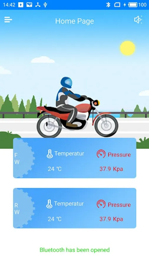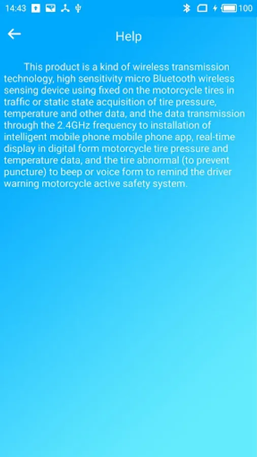 This is mainly for the current motorcycle tire data monitoring, motorcycle installed our company (Shenzhen science and Technology Development Co., Ltd. beyond) the tire pressure products, download the app, bind the corresponding tire pressure equipment name, change of motorcycle tire pressure, real time display to the user interface of APP monitoring data to remind, have tire temperature, tire pressure alarm, high pressure, low alarm, tyre leakage alarm etc..