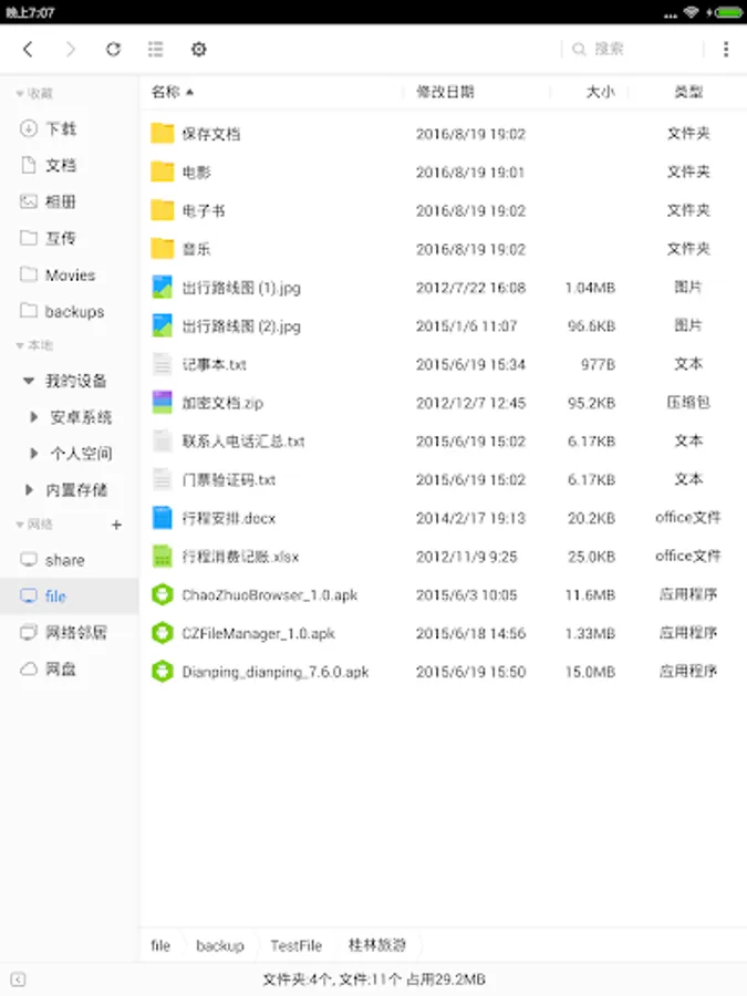 File Manager is a file management tool running on Android system, which supports touch screen, external mouse/keyboard and telecontroller, it provides a easy way to manage files on both your local disks and the file servers in your local network.