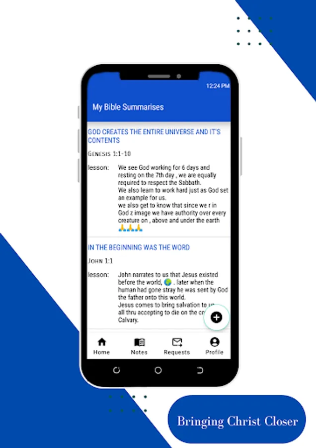 The app also has a provision for taking bible summarises for future references