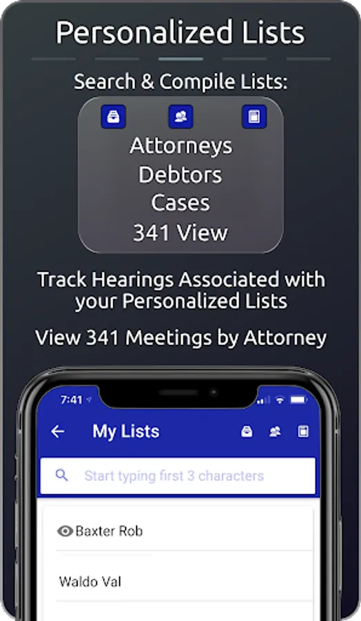 c. pulls down 341 hearings for your team of attorneys filterable by individual attorney names.