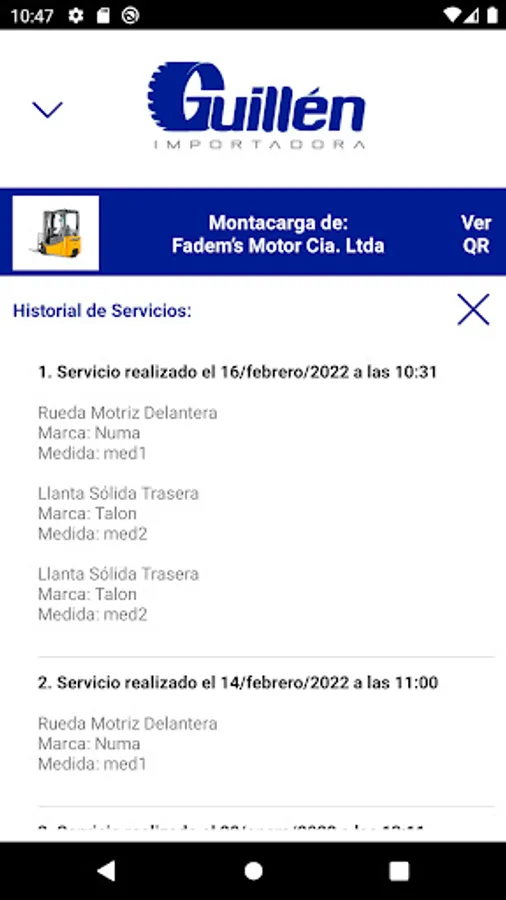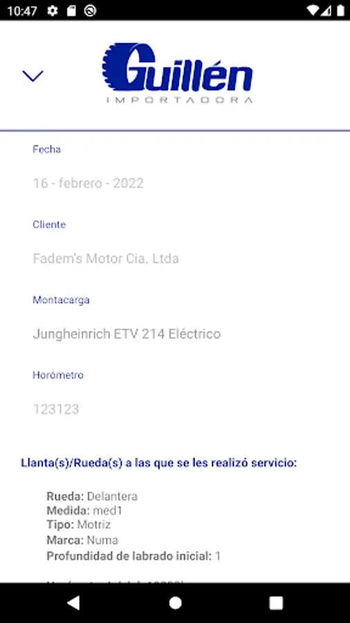 Importadora Guillén App allows you to perform and view the history of wheel / tire change services for different vehicles that have been received by the company. Keep in mind that to have access you must be a client of the company.