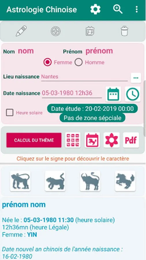 - places the 111 Astres on the 12 palaces of the Chinese theme according to the date and place of birth,