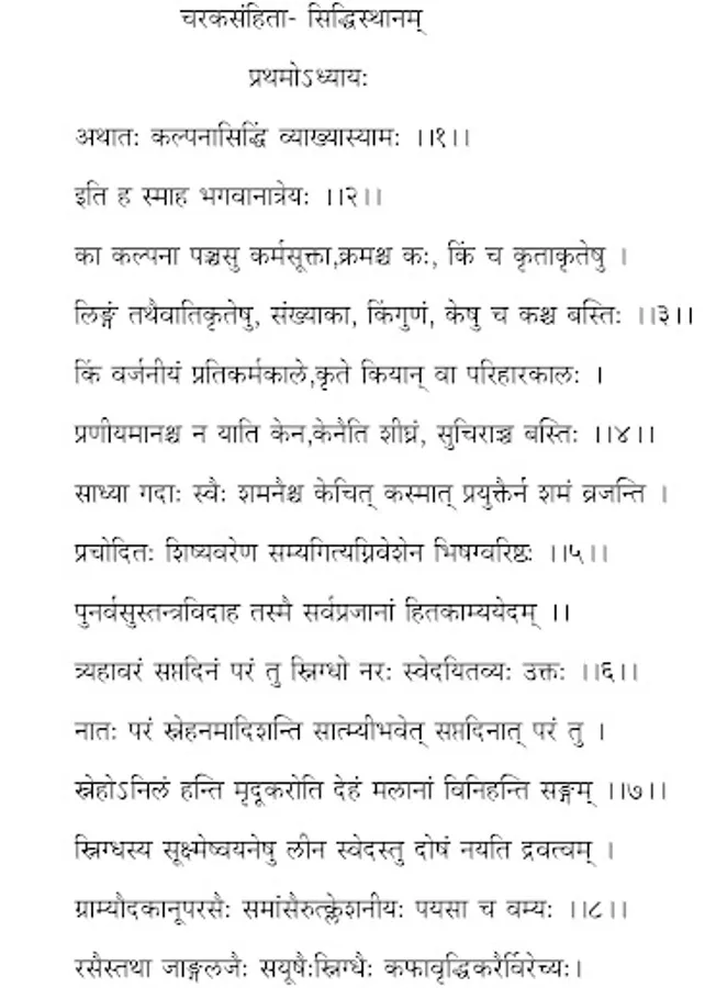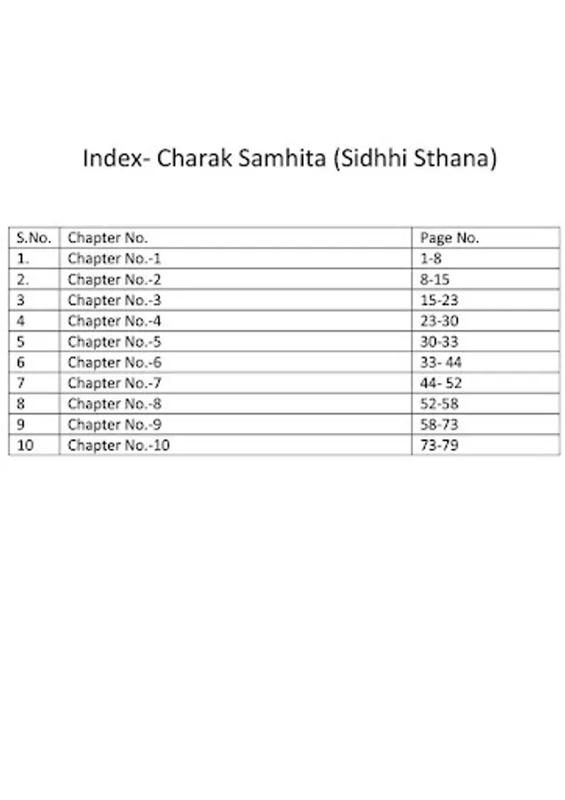 this application covers Charak Samhita Siddhi Sthana having 10 chapters.