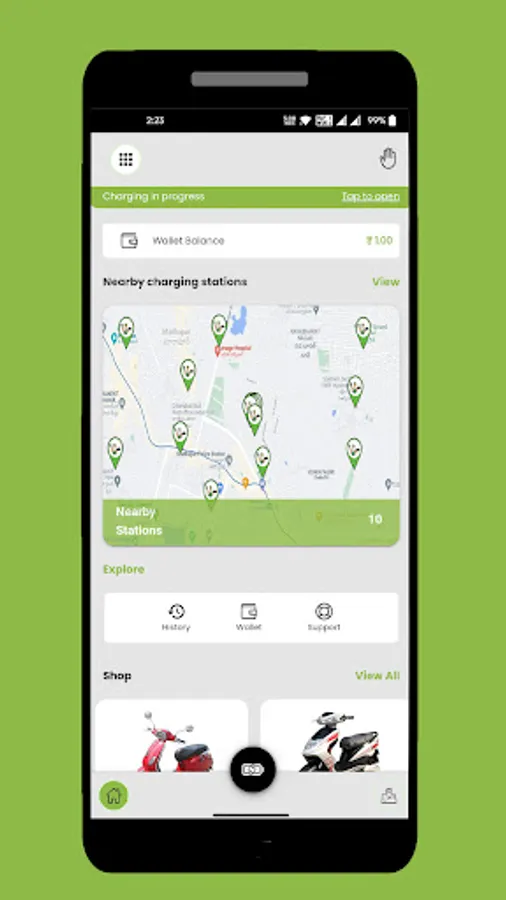 EVChargman allows user to charge from their app connecting the charger to the device. EV users can search the nearest network in your city or location in the Map, thus by selecting it gives the option to see the details of the charger, status of availability and distance between ev user and the nearest charging network. EVChargeman is designed with easy payment networks, so that with the minimum amount in the wallet users can charge their EV bike, EV Car or vehicle with simple scan of the device.