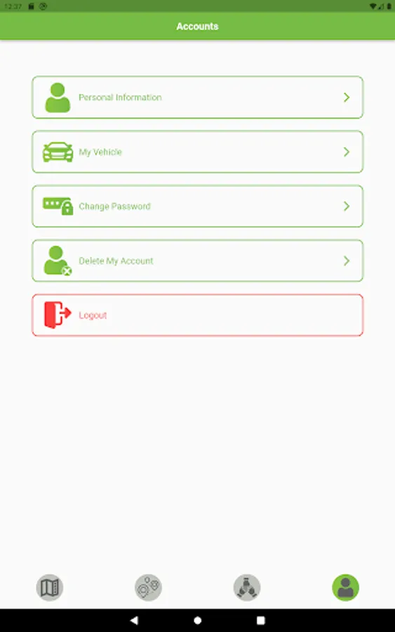 The app connects to the user's EV charging station or network, and provides real-time information on charging status, including battery level, charging time, and cost.