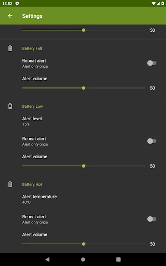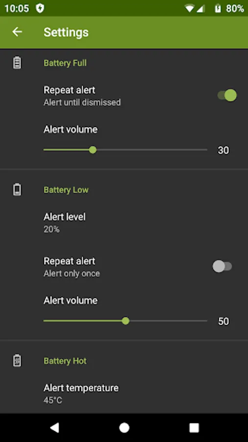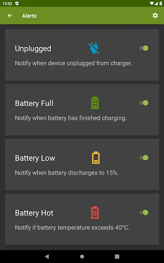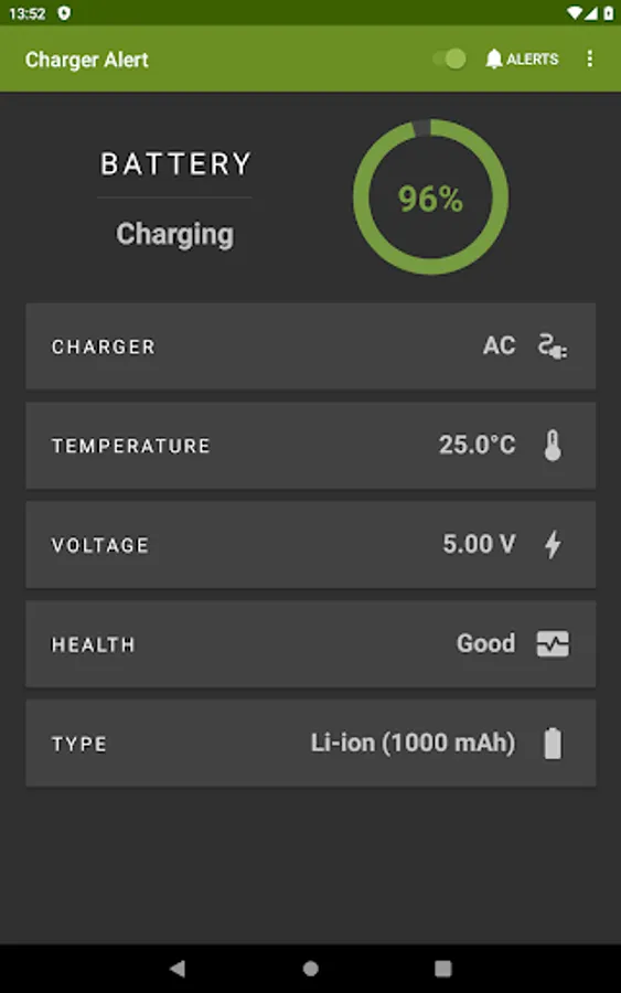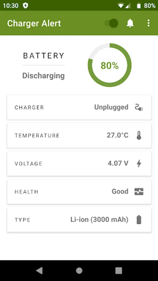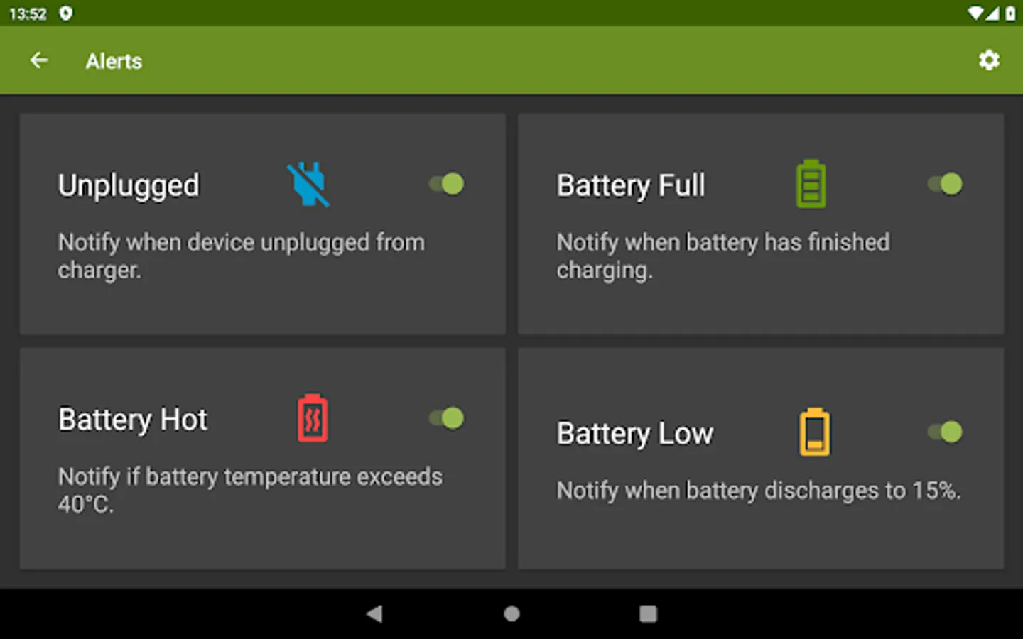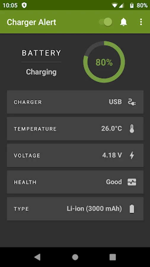 Then use Charger Alert™ - the battery saver app that helps extend your battery life and prolong your battery health by alerting you when the battery percentage is too low, the temperature is too hot and overheating, or your device has finished charging so you can unplug it.