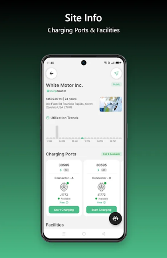 - Details Site Info Screen: You can now view detailed information about charging stations, including location, Availability, Amenities, Pricing, Opening times and more.