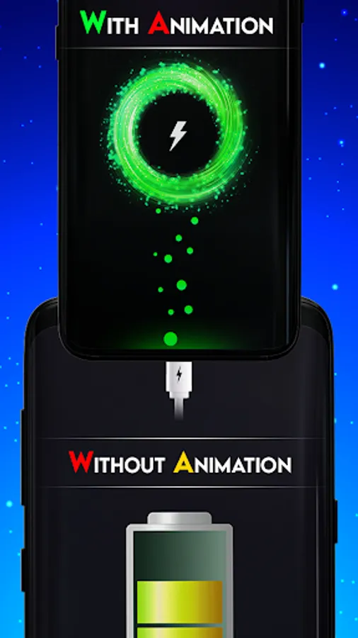 Free Battery Charginganimation & animated lock screen is the best app to set the alarm when your mobile battery power is full If you want to test the Charging battery animation screen then put the charger to your mobile and then within some seconds you will saw a cool best charging animation on your screen. Really it’s an amazing tool to customize your mobile personality.