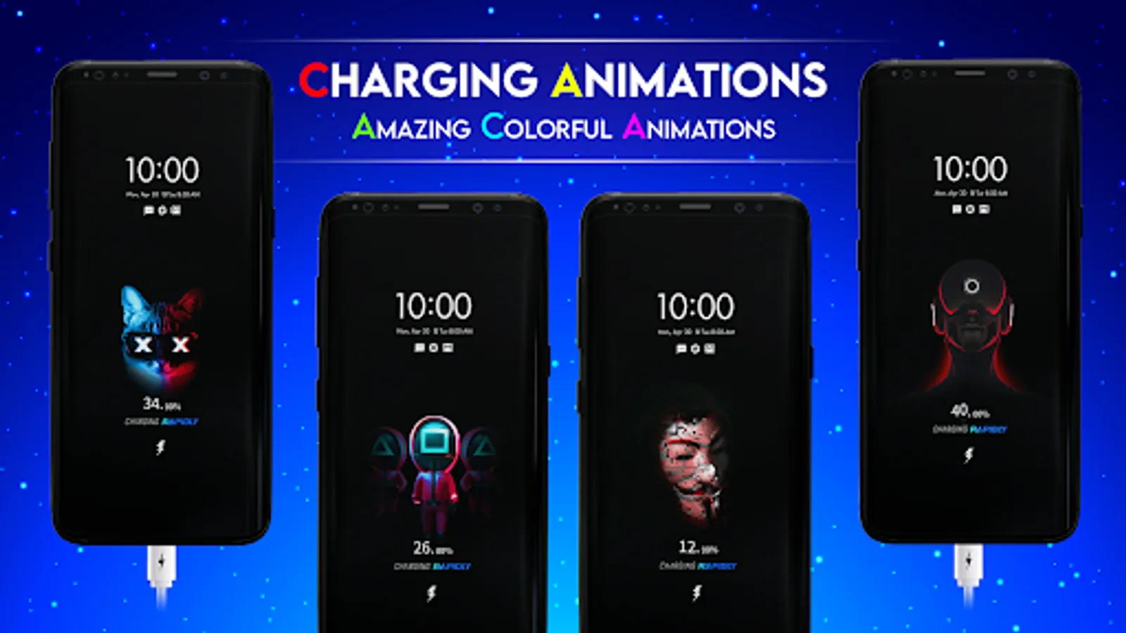 Cool and smooth!! Bundle of charging animations are carefully designed to make the picture smooth and eye-catching, and never drop frames! Charging show - charging animation is automatically displayed. In this Charging Animator, after plugin to the charging cable, there is no need to open the APP manually, and the charging animation is immediately displayed on the phone screen. Come and have a try.
