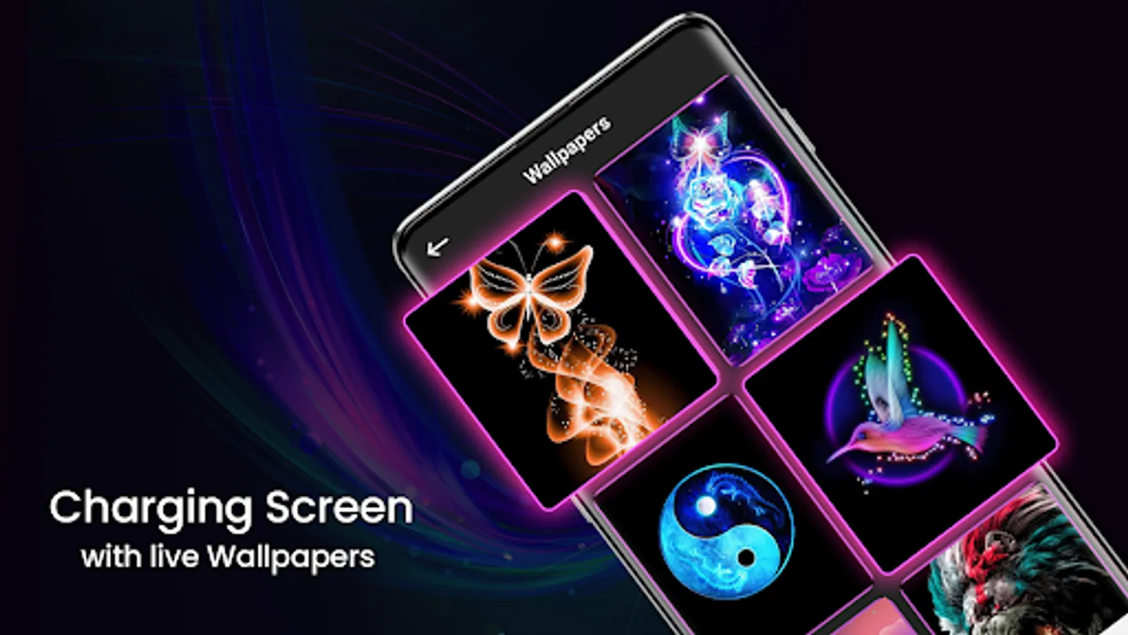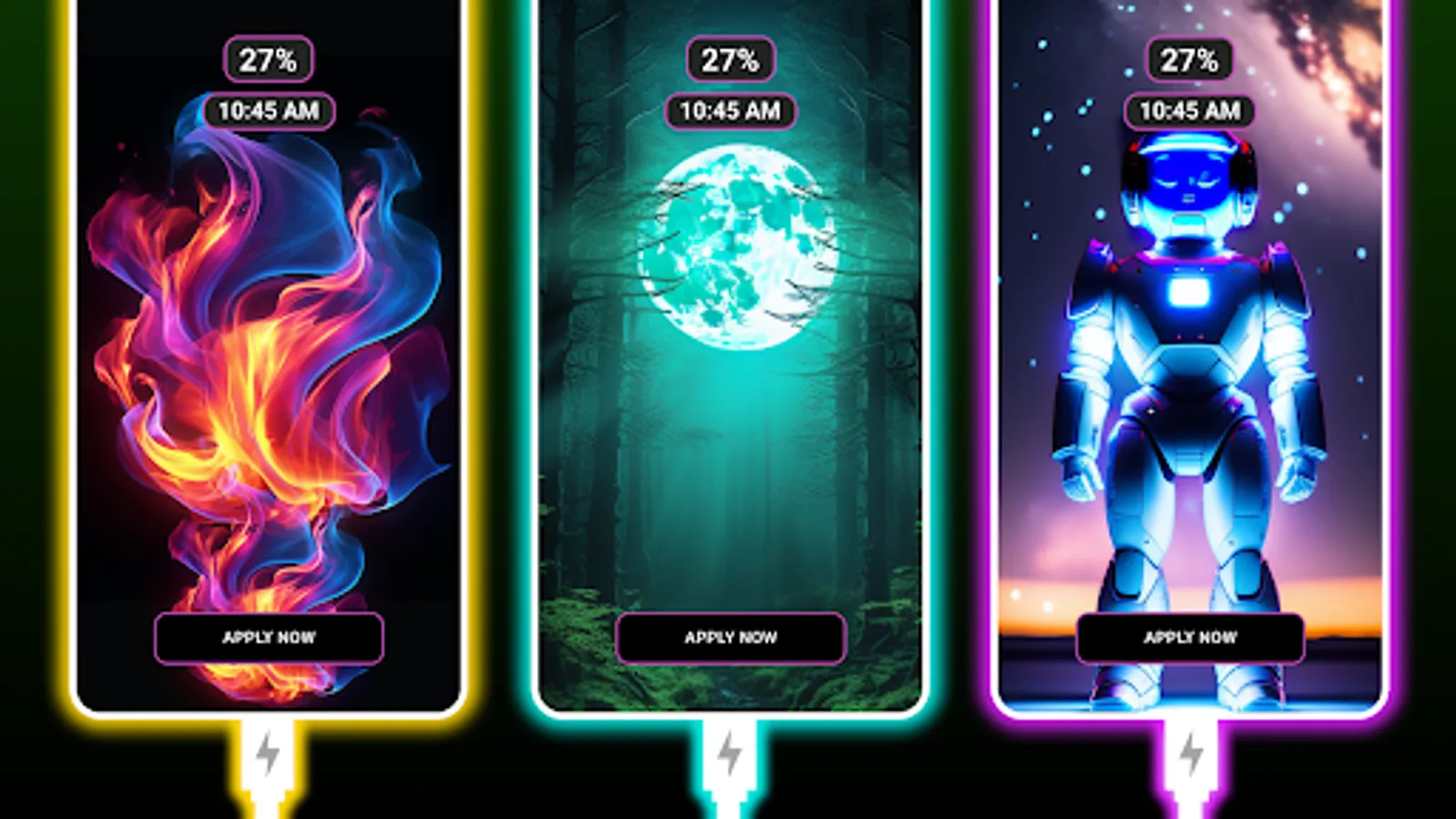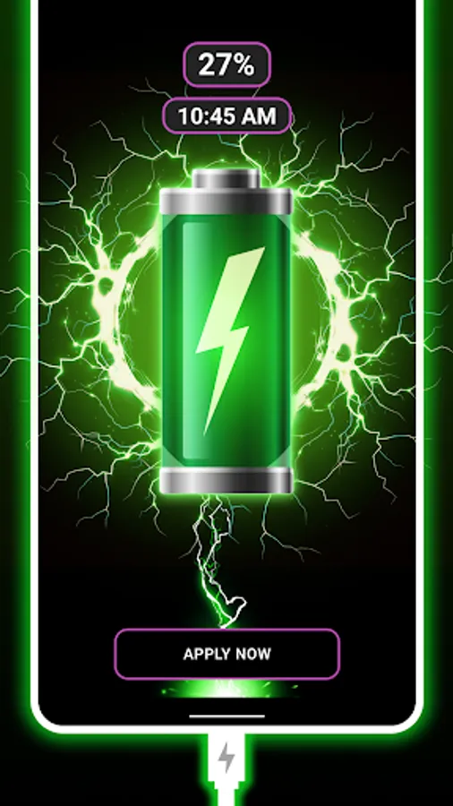 Choose from various 3D charging animations or neon color effects. You can use these HD battery charging animation apps to set your phone's lock-screen background while the phone charger is connected. With the user-friendly interface, you can make your screen glow by selecting the neon color effects animation after plugging in the charger in this battery charging animation. It gives your phone screen a different touch and a smart look while charging.