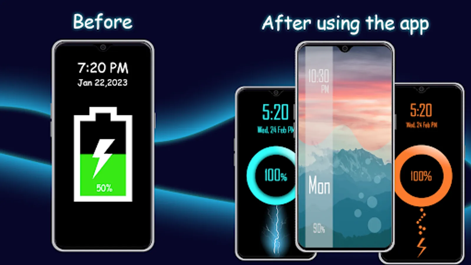 📱 Lock Screen Battery Charging Animations 📱 You can Select from different charging battery animations or neon color effects. you can use these charging animations to set as the lock-screen background of your Mobile phone screen while the phone charger is connected. With the friendly & attractive user interface, you can make your screen glow by selecting the neon color effects animation after plug-in the charger. This charging show app gives your phone screen different touch and smart look with charging fun.