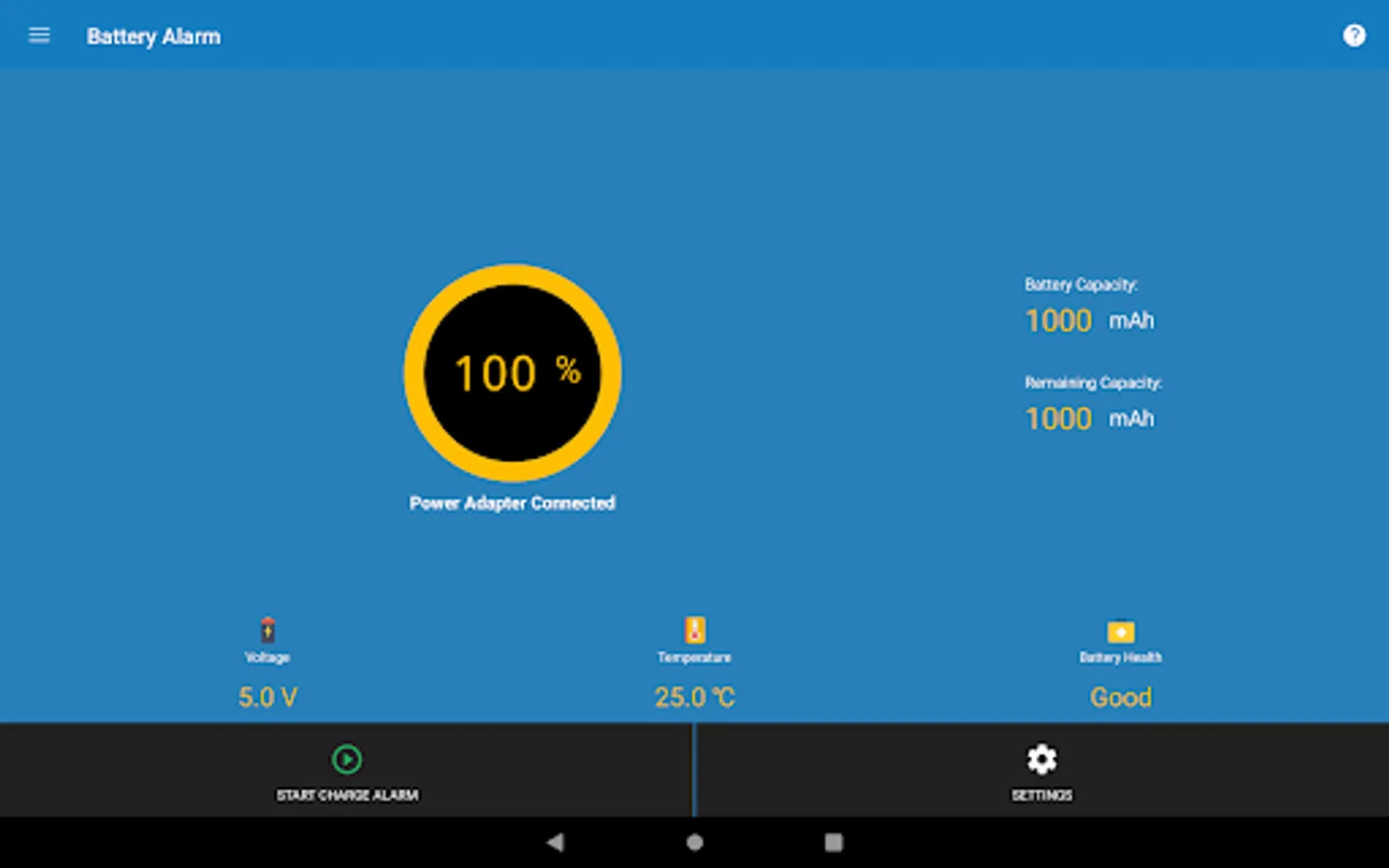 With Full Battery Alarm, you can manually set your preferred Battery Percentage Level (ex, 90%). When reached, Alarm alert will automatically start ringing until you stop it or uplug the phone from the charger!