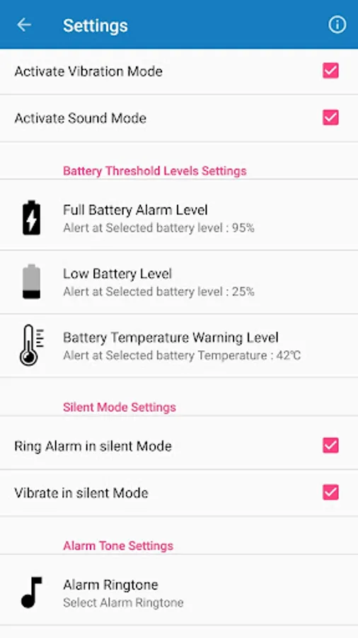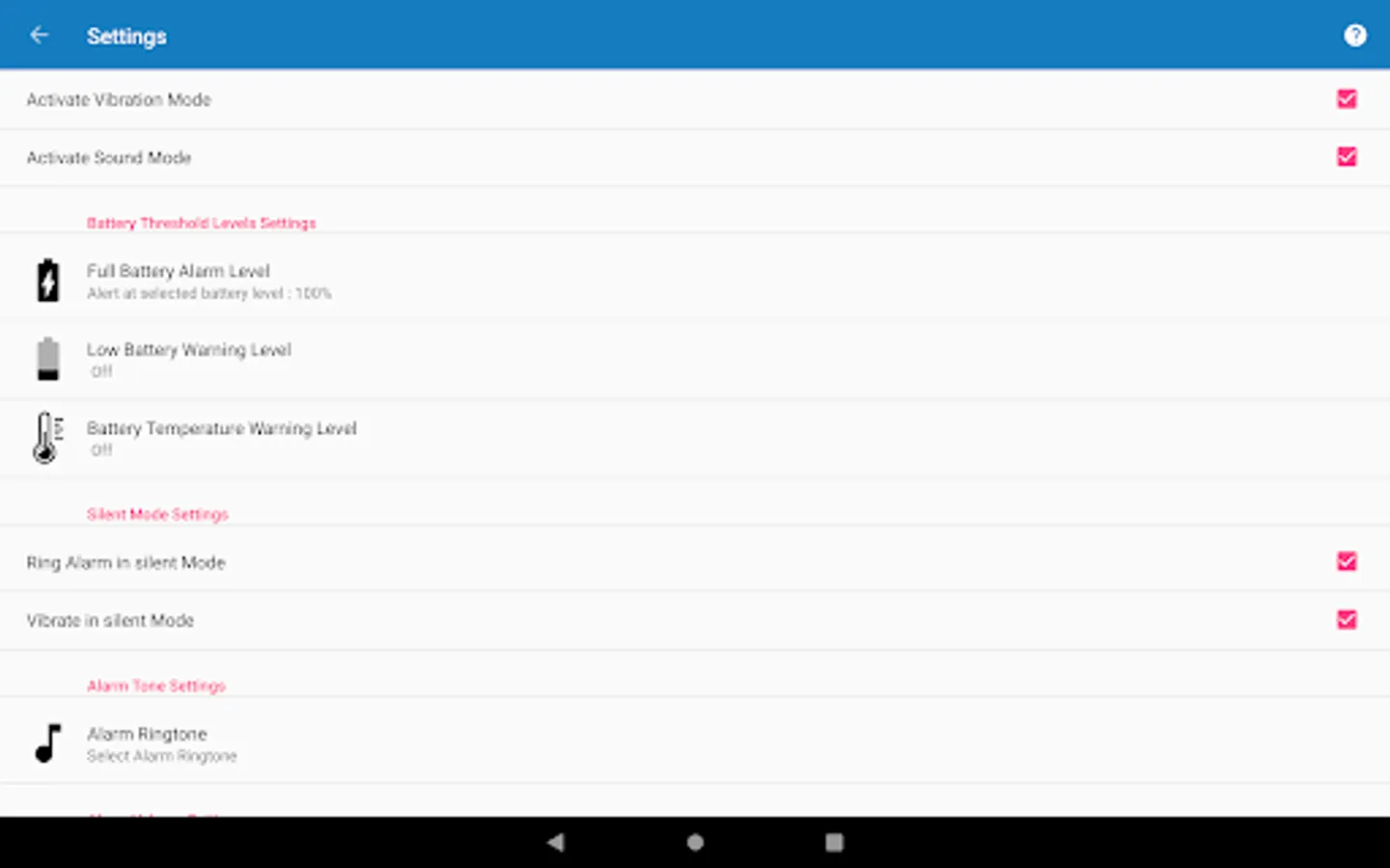 ➺ Increase the volume of battery alarm settings as per your choice. You can additionally choose just vibration as alarm type